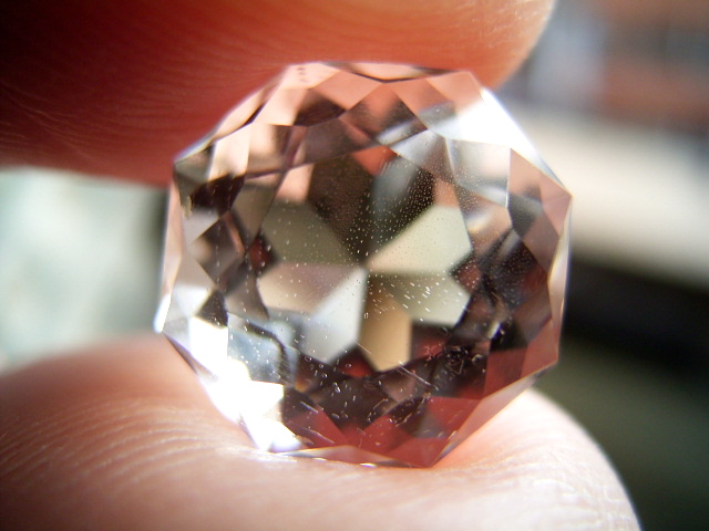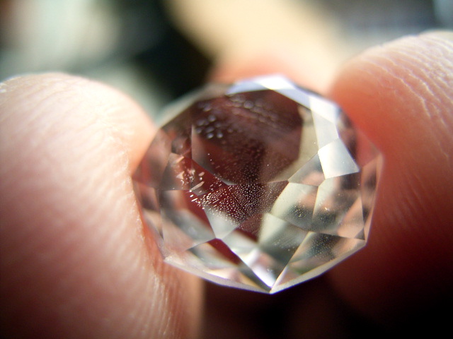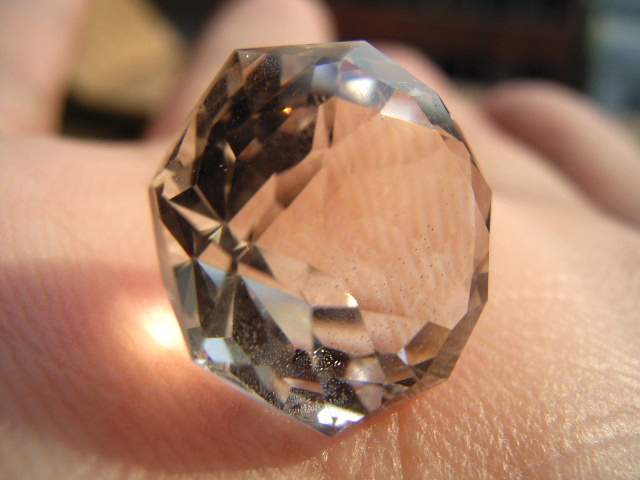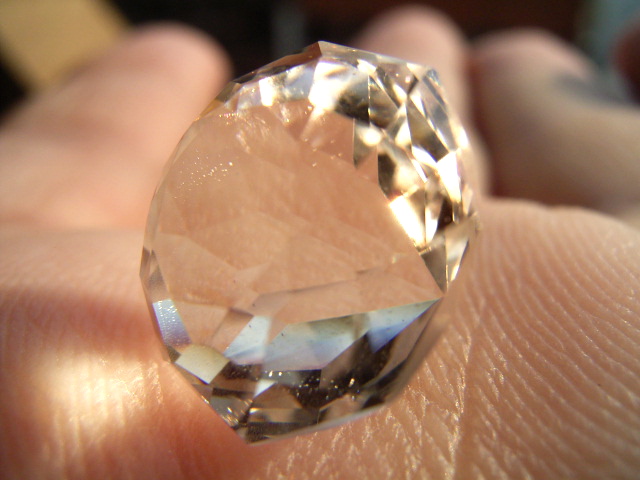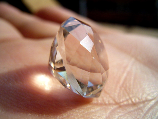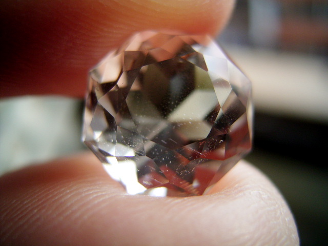結晶の内側の面に光が集まって、プリズム効果とも相まって、虹のような反射が綺麗です。