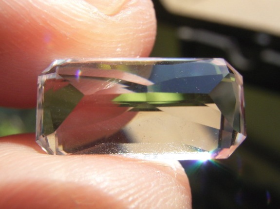 結晶の内側の面に光が集まって、プリズム効果とも相まって、虹のような反射が綺麗です。