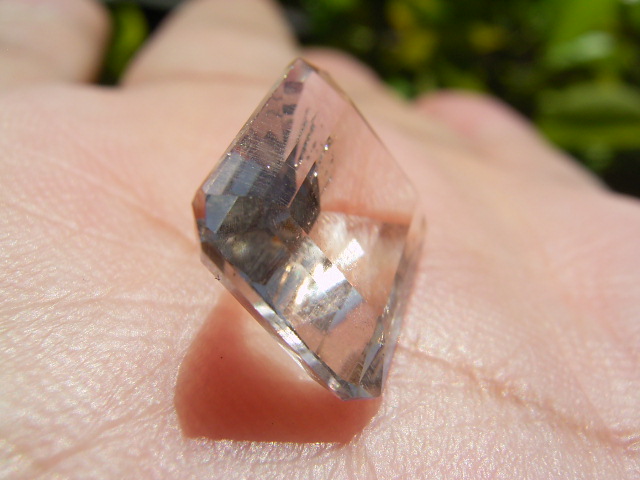 結晶の内側の面に光が集まって、プリズム効果とも相まって、虹のような反射が綺麗です。